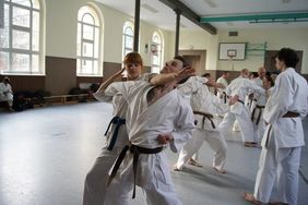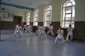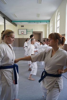 Wie immer wurden die Einheiten in Anfänger (9. bis 6. Kyu) und Fortgeschrittene (5. Kyu bis Dan) unterteilt. Schwerpunkt für die Anfänger war diesmal die Heian nidan, wobei in der ersten Trainingseinheit sehr viel Wert auf Explosionskraft der Beine bzw. Reaktionsschnelligkeit gelegt wurde. Gepaart mit vielen Beintechniken, sind hier alle schon ins Schwitzen gekommen. In der zweiten Trainingseinheit wurden unterschiedliche Anwendungsmöglichkeiten der ersten Sequenz der Heian nidan vermittelt und geübt. Hier kam es darauf an, unterschiedliche Armtechniken mit der gleichen Seite am Partner zu üben (Knoten in den Armen und im Kopf mit eingeschlossen …)